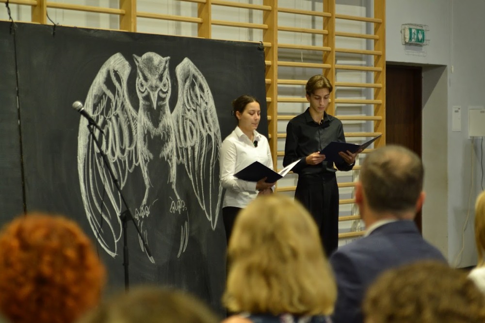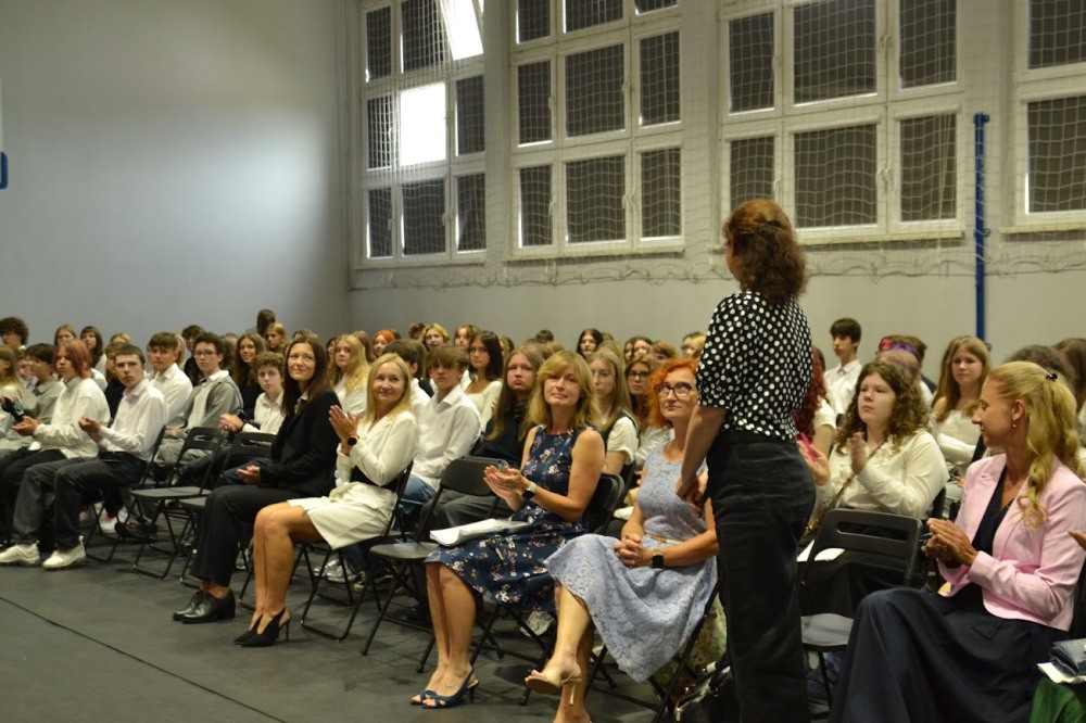 Akademię przygotowali nasi uczniowie – to oni prowadzili wszystkich przez kolejne epoki, wplatając w opowieści mądrość, niezwykłość istoty ludzkiej. W imieniu władz powiatu głos zabrała wicestarosta Barbara Chrobok, która uroczyście otworzyła nowy rok szkolny i życzyła wszystkim odwagi w podejmowaniu wyzwań.