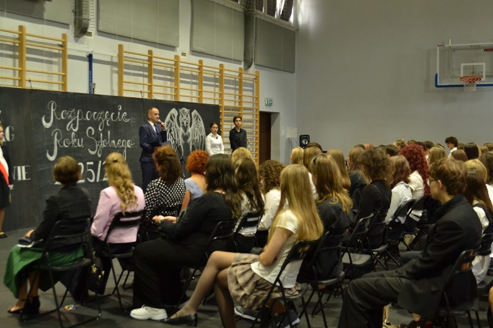 Akademię przygotowali nasi uczniowie – to oni prowadzili wszystkich przez kolejne epoki, wplatając w opowieści mądrość, niezwykłość istoty ludzkiej. W imieniu władz powiatu głos zabrała wicestarosta Barbara Chrobok, która uroczyście otworzyła nowy rok szkolny i życzyła wszystkim odwagi w podejmowaniu wyzwań.