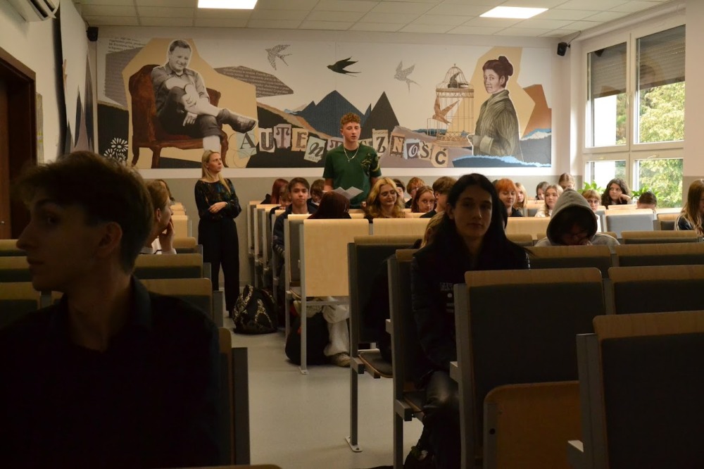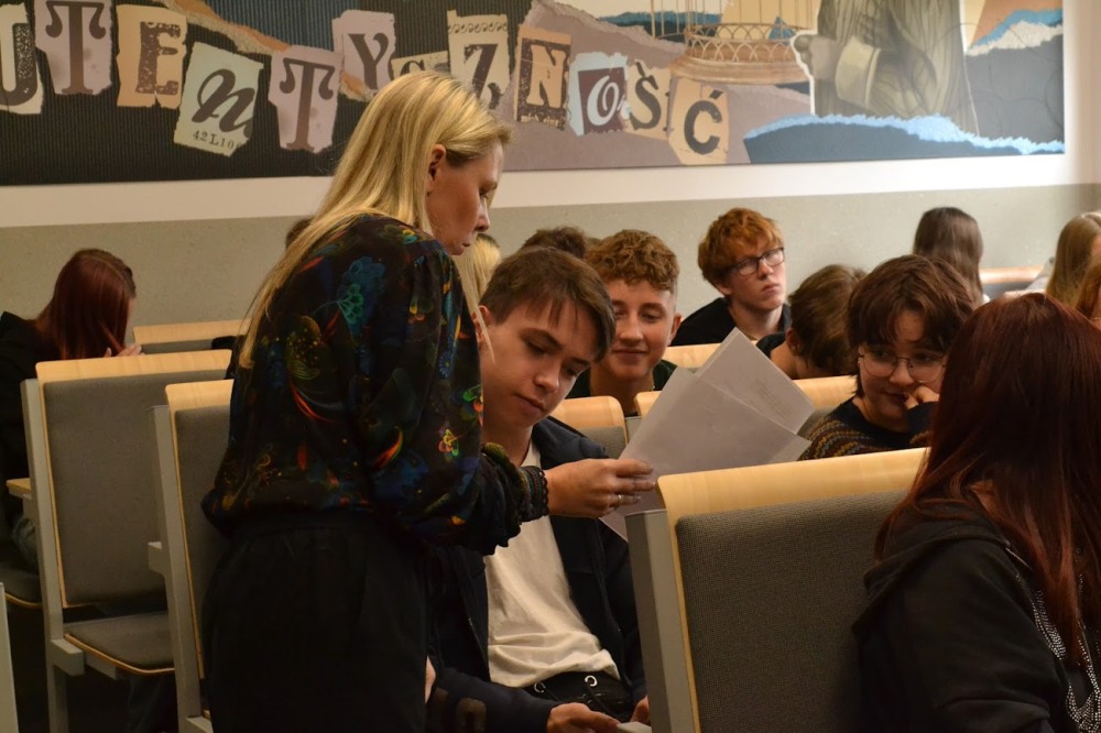 29 września zapisze się złotymi literami w kronice naszej szkoły – właśnie tego dnia odbyła się pierwsza w historii debata kandydatów do Samorządu Uczniowskiego. Było to wydarzenie wyjątkowe, nowoczesne i pełne emocji. Dzięki transmisji online debatę mogli śledzić uczniowie całej szkoły, a na sali zgromadzili się przedstawiciele klas IB i IIA, tworząc atmosferę spotkania na najwyższym szczeblu.